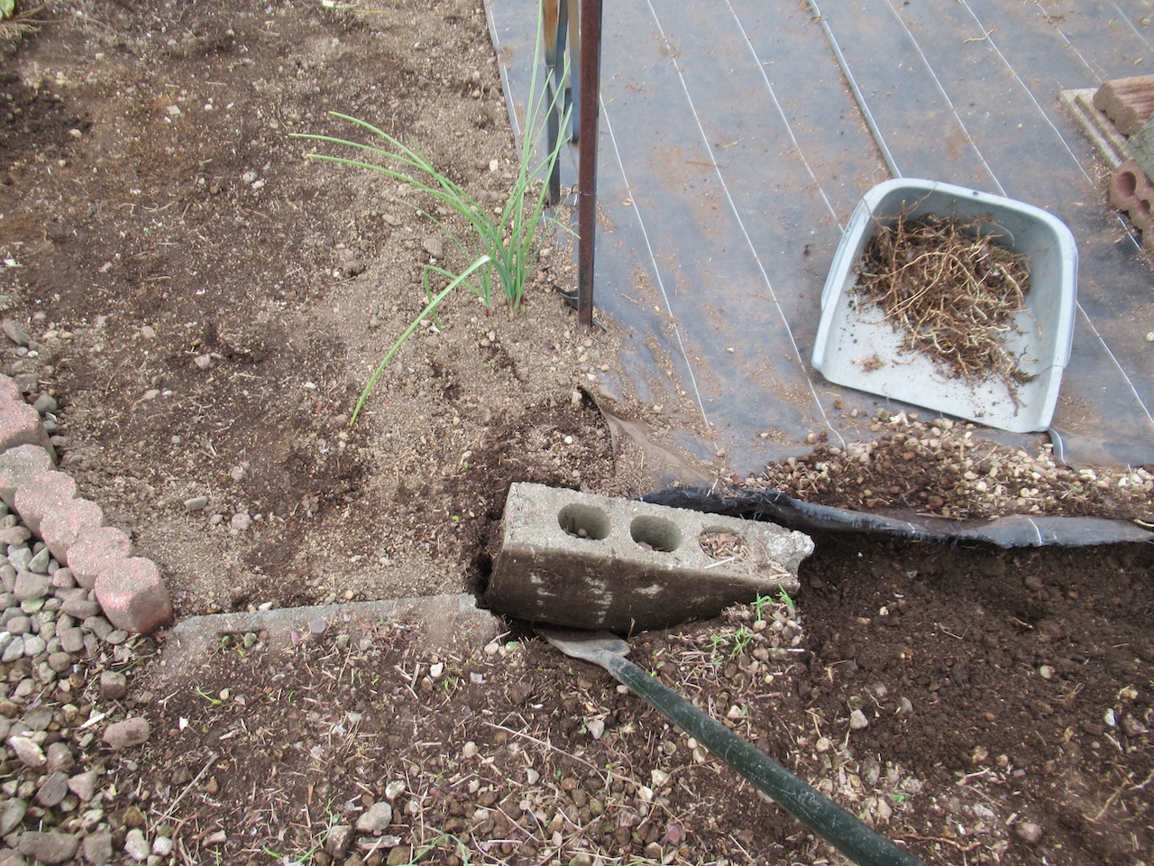 ひたすら草取りと石ころ取りを。