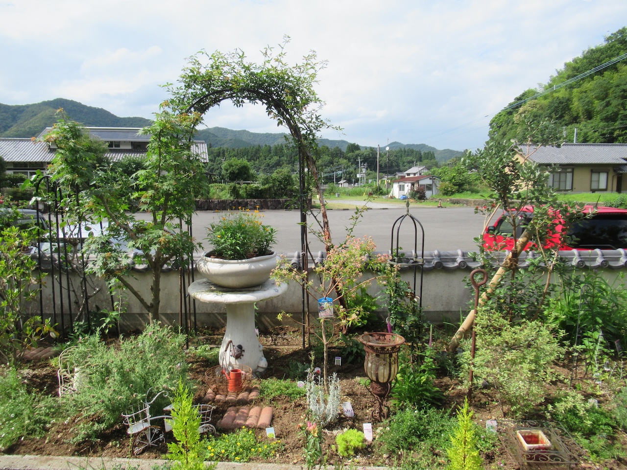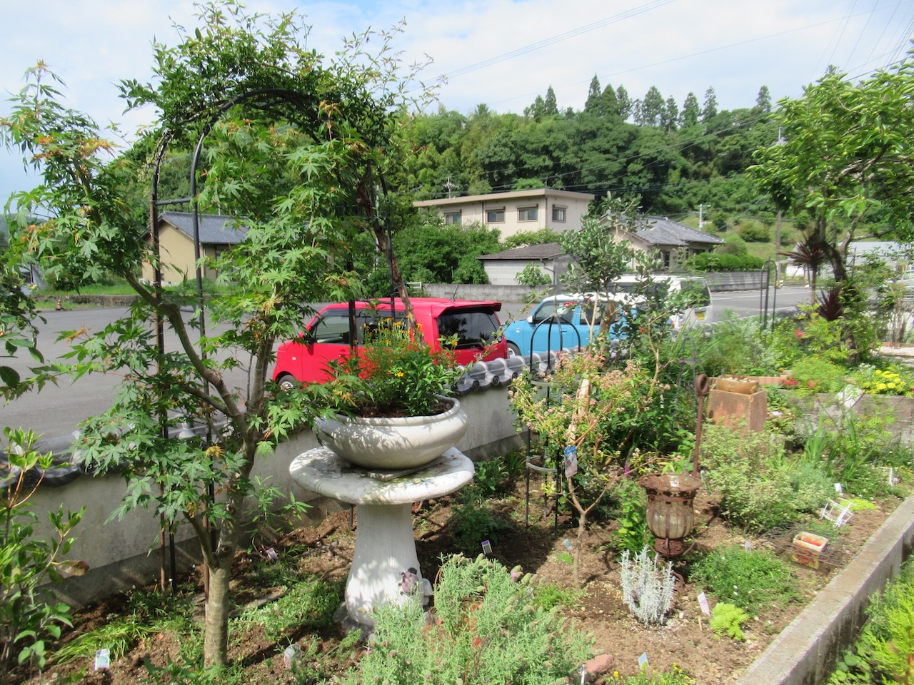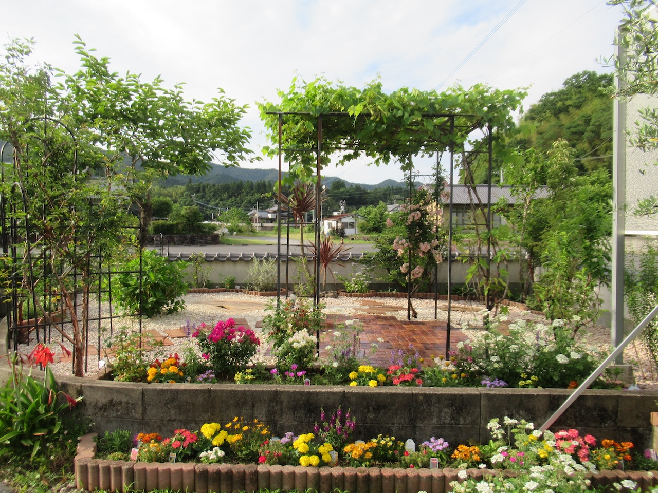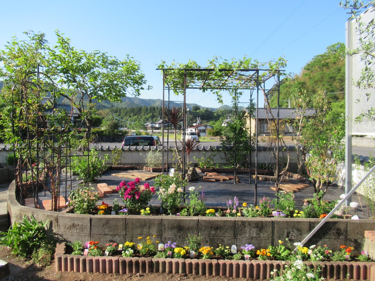 周囲の花壇には小低木や宿根草なども植栽を。