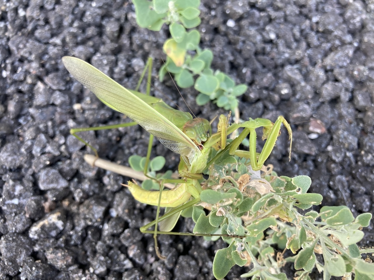 一方では、益虫のカマキリが共食い中。
