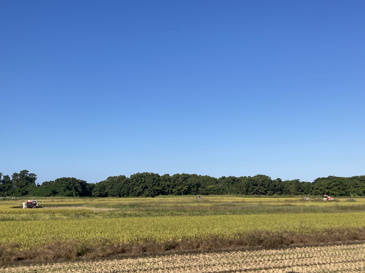 周囲を見渡せば、田んぼの稲刈り作業も進み、