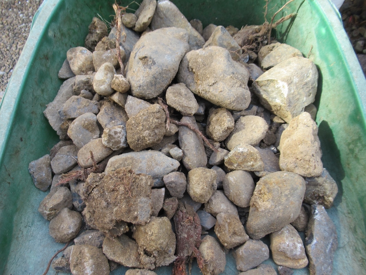 少し掘っただけで石がコレだけ出るので、