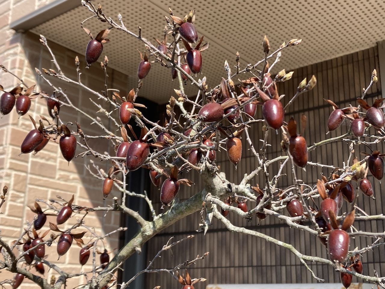 花後にはデカイ実が成り、真下の花壇作業の際に