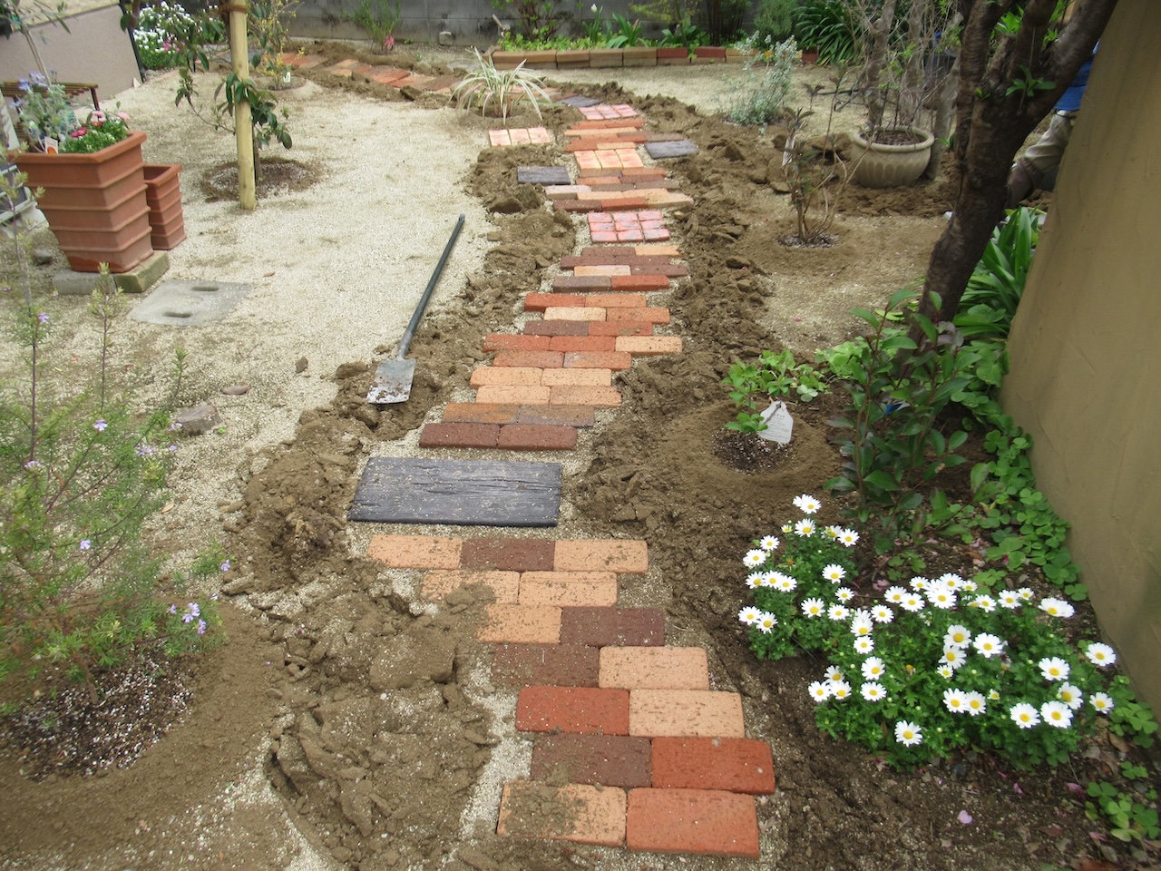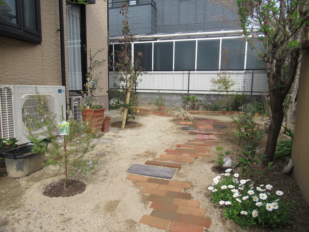 先日、レンガステップ敷設や植栽などを